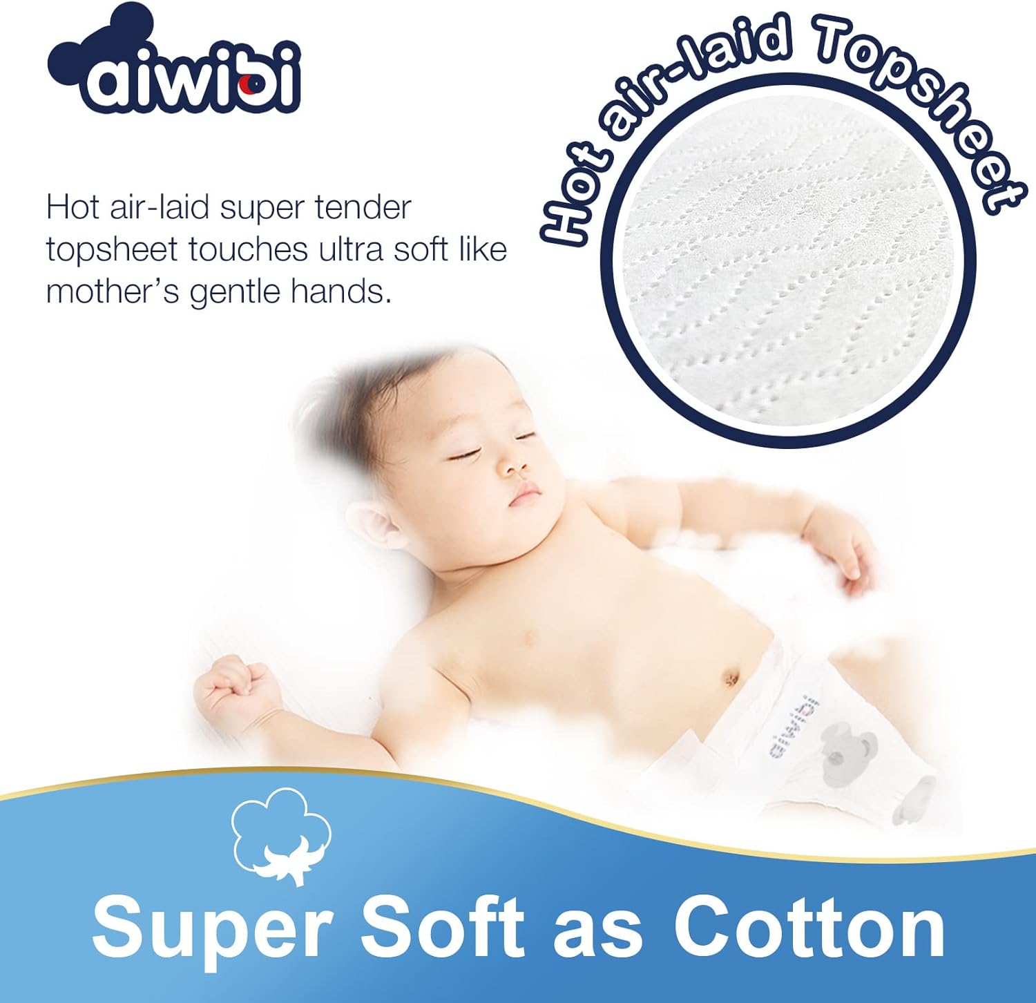 • حفاضات Aiwibi معتمدة من قبل المعهد الألماني للأمراض الجلدية Dermatest، مما يعني أنها لطيفة على بشرة طفلك. لا نضيف أي عطور أو مستخلصات أو صبغات أو مواد كيميائية أخرى لضمان أن تكون الحفاضات خالية من الروائح ولا تسبب الحساسية.