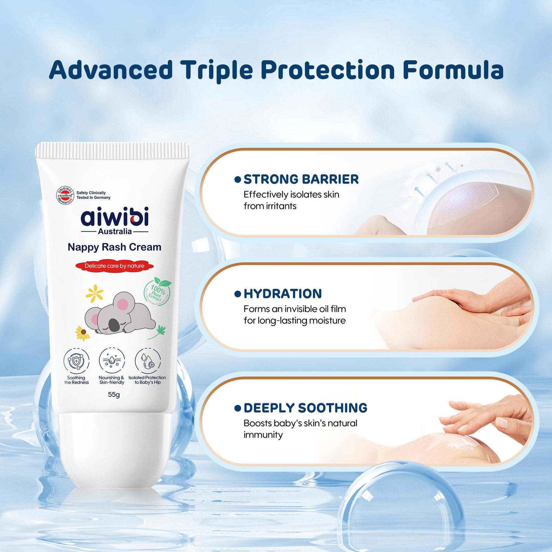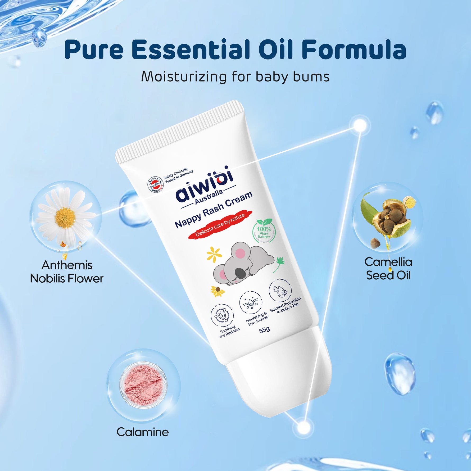 Aiwibi Nappy Rash Cream is formulated with natural ingredients, including Beeswax and various plant extracts, providing gentle protection for your baby’s sensitive skin.