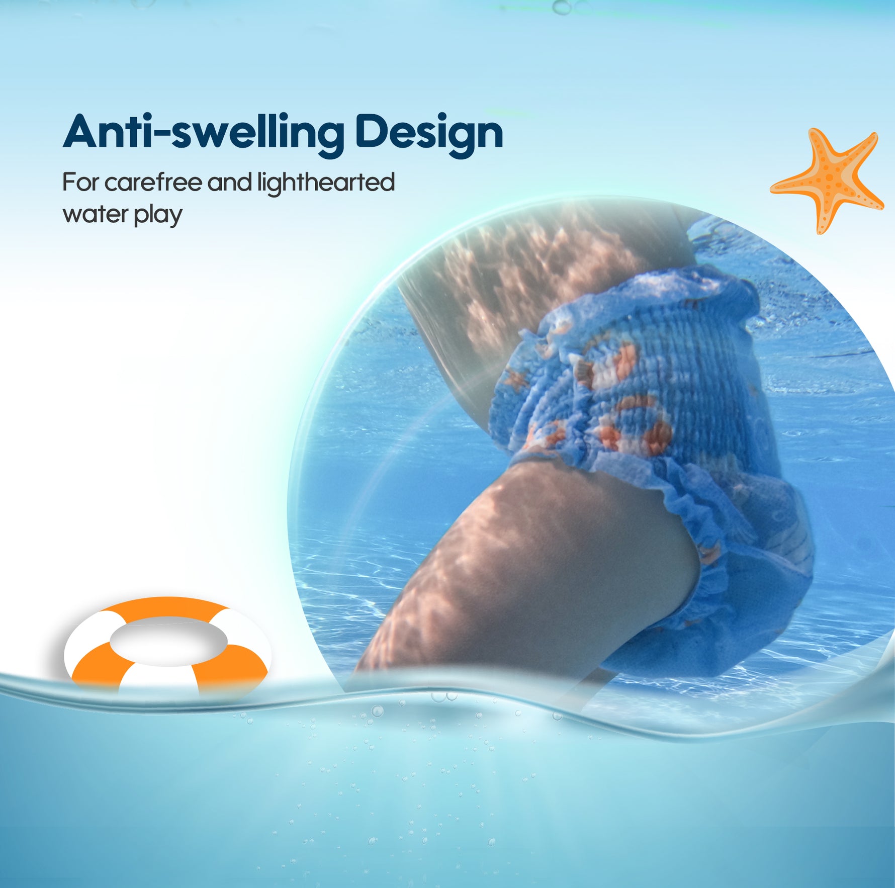 Our swimming pants feature double anti-leakage protection and a 360° elastic waistband, ensuring a snug fit that prevents leaks during use.