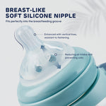 • Features a breast-like soft silicone nipple designed to minimize air intake and reduce nipple confusion, supporting a natural feeding experience for your baby.