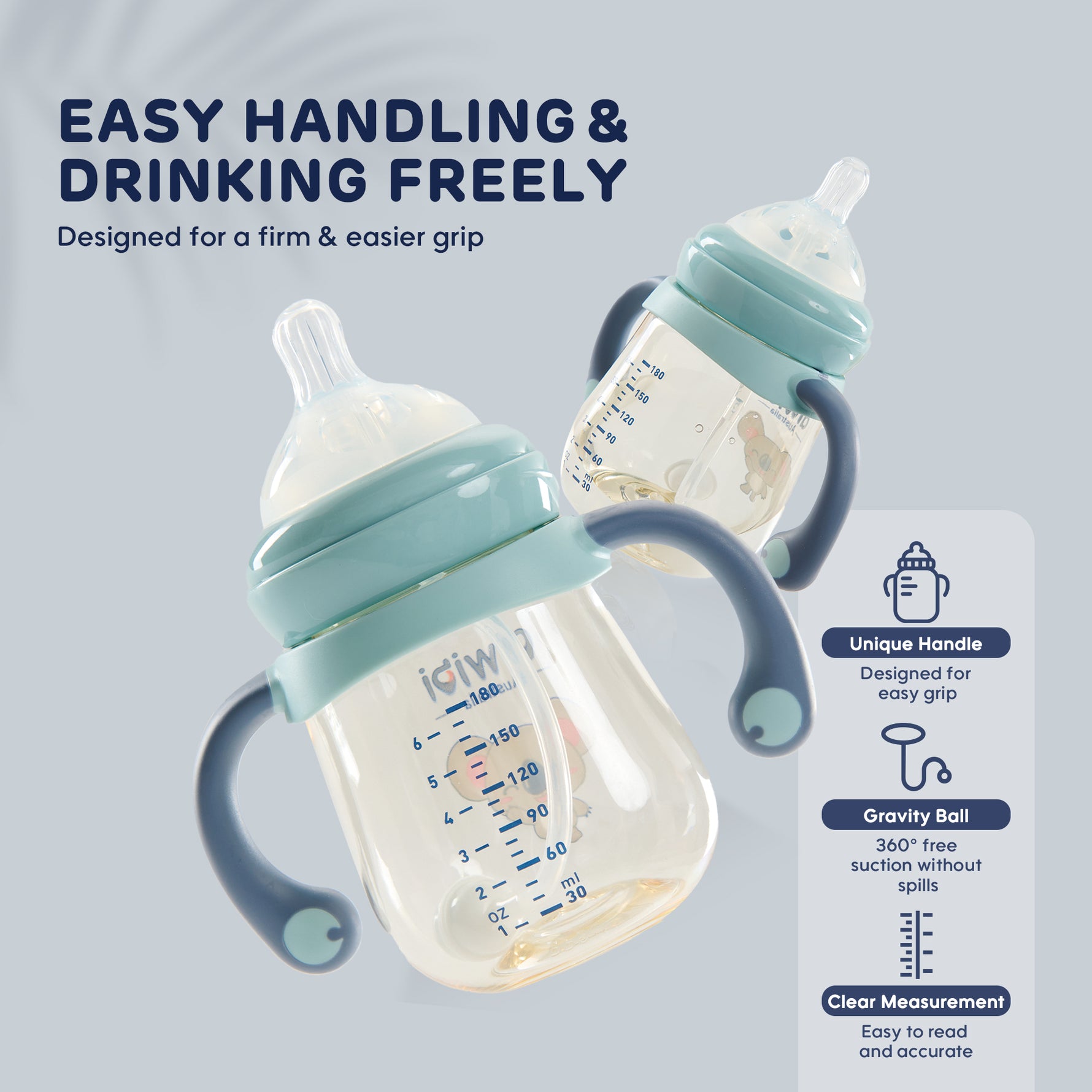 • Innovative gravity ball design allows 360° free suction, enabling your baby to drink from any angle without spills or messes.