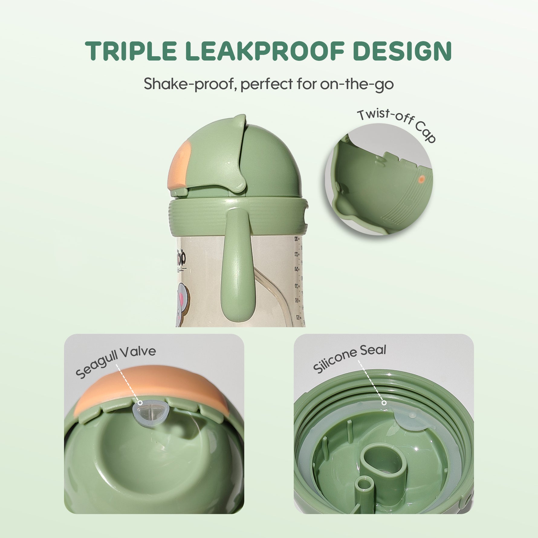 The gravity ball inside the straw allows your baby to drink from any angle, providing 360° free suction without spills. It ensures smooth and continuous flow of liquid.