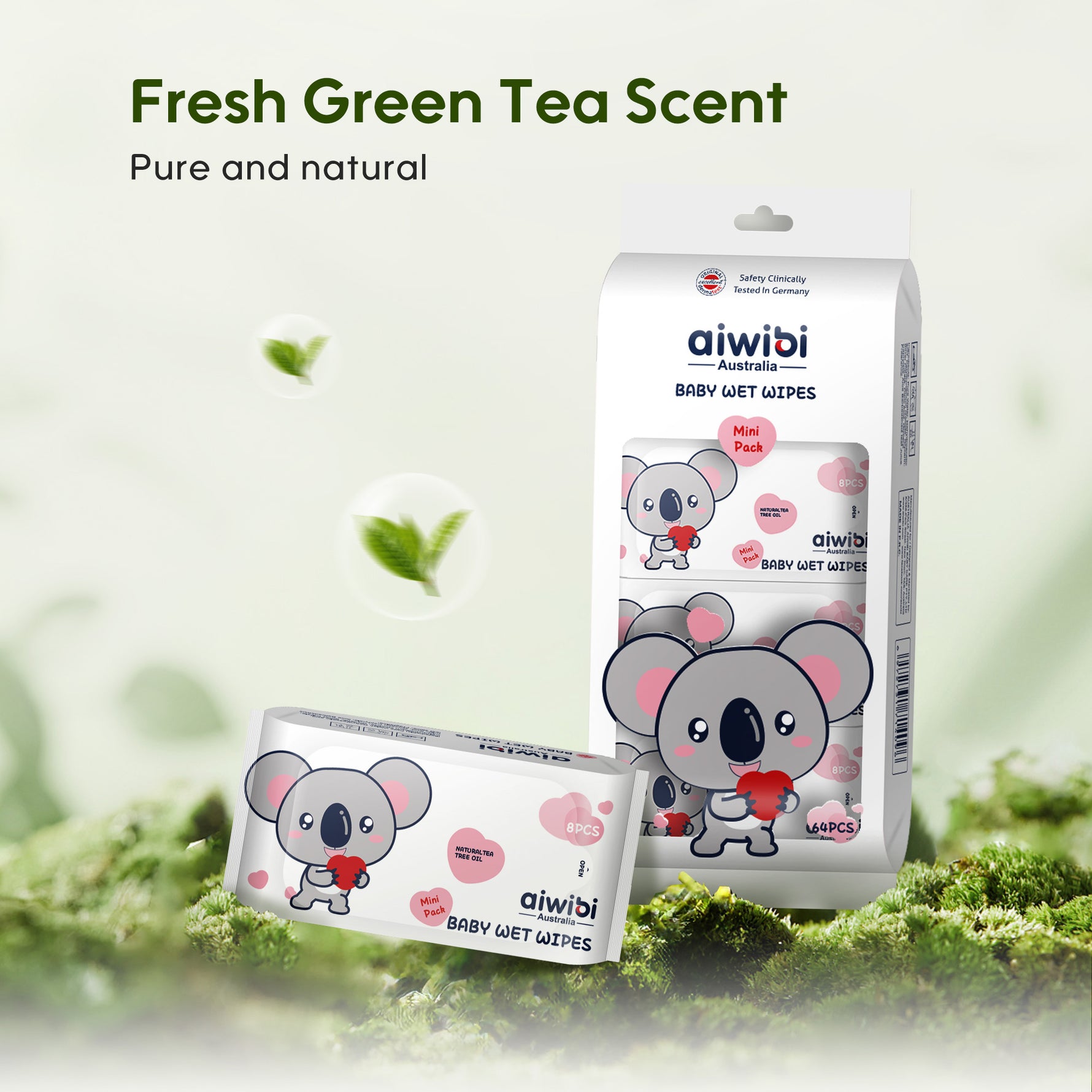 Aiwibi Mini Pocket Portable Wipes – Travel-Friendly & Ultra Soft (8 Packs × 8 Pcs | 64 Wipes)