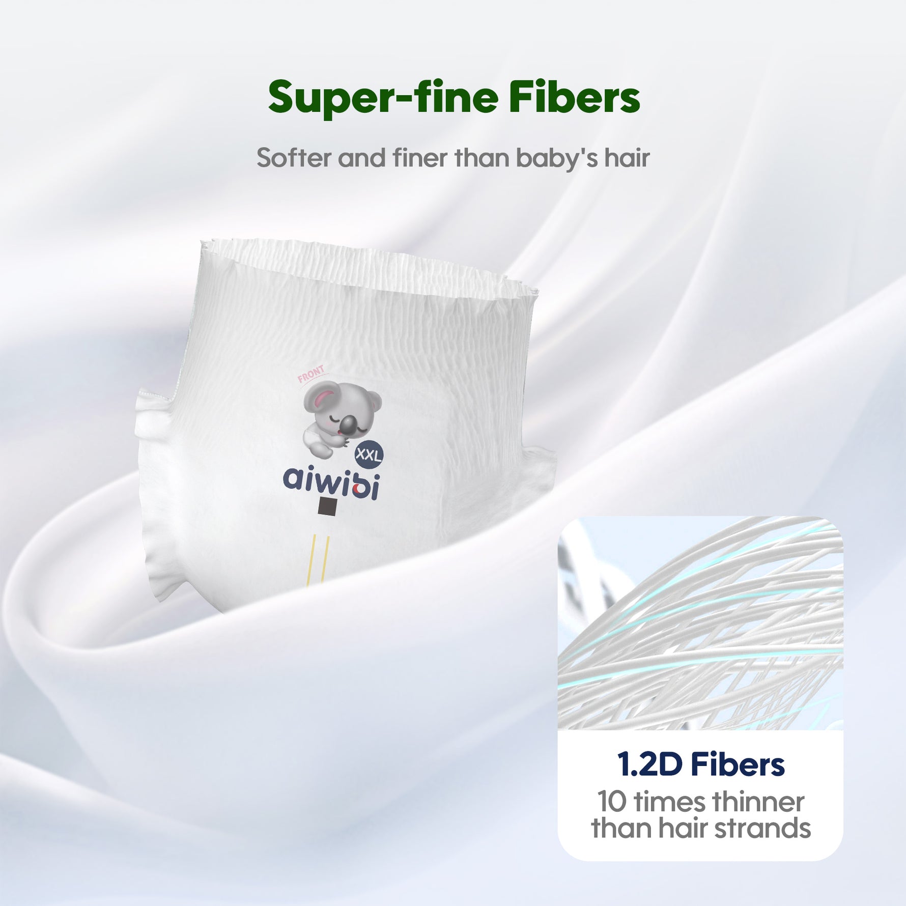 Aiwibi diapers are made using high-quality wood pulp derived from nature. This pulp comes from sustainably managed forests, so while we use natural resources, we also prioritize environmental protection and sustainability. Through fine processing, we maintain the natural absorbency and softness of the material to provide your baby with a comfortable wearing experience while reducing irritation to their sensitive skin.